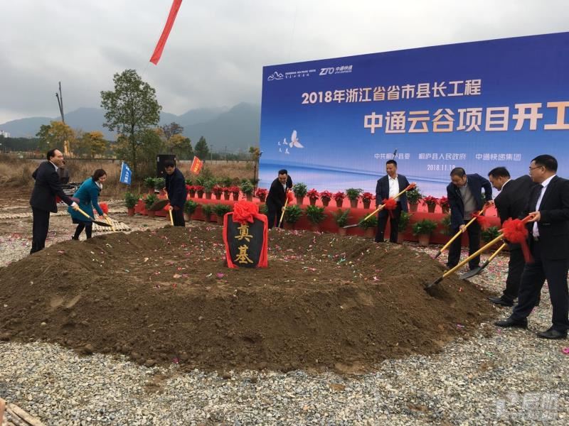 2018年11月19日,我縣舉行2018年浙江省省市縣長工程-中通云谷項目奠基儀式。桐廬縣縣委書記朱華、縣人大主任游宏、政協(xié)主席王金才、縣委常委副縣長吳金富、縣委常委健康城黨委書記周海靜、中通快遞集團董事長賴梅松、公司董事長余良軍、及相關(guān)各部門、鄉(xiāng)鎮(zhèn)(街道)等領(lǐng)導(dǎo)參加,儀式由縣委常委副縣長吳金富主持。