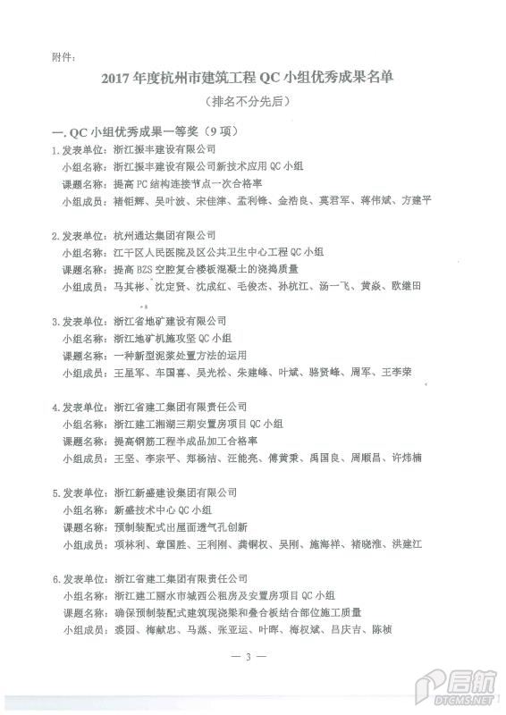 2017年度杭州市建筑工程QC小組優秀成果二等獎