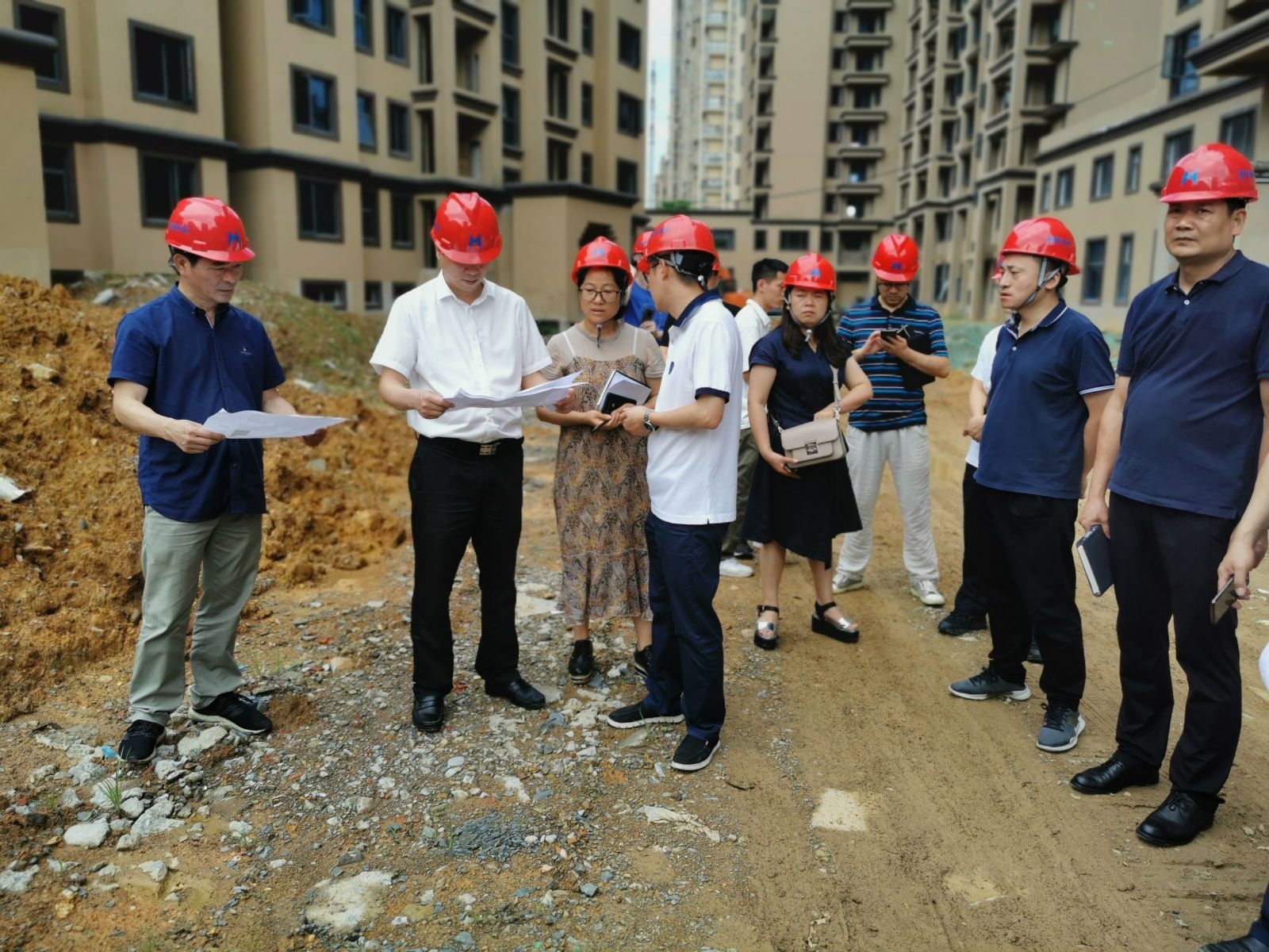 今日上午,由桐廬縣縣委常委、開發區(科技城)管委會黨委書記施建華及相關職能部門一行來到我司承建的美凱西姆二期項目現場進行調研工作,在現場,聽取了公司執行董事余冠佐對項目的建設進展、推進落實的具體實施方案。